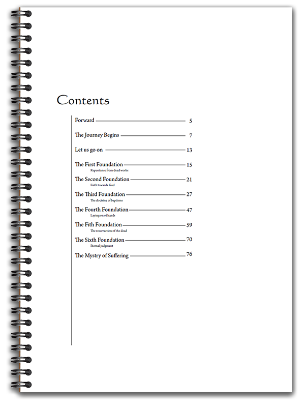 This 82-page, spiral-bound manual offers an in-depth exploration of the first principles, found in Hebrews 6:1-3. It's glossy, clear cover makes it visually appealing and its leather-look back makes it durable and easy to store. Invaluable for anyone wanting to understand the foundations for entering the Kingdom of God.